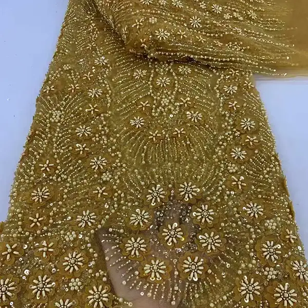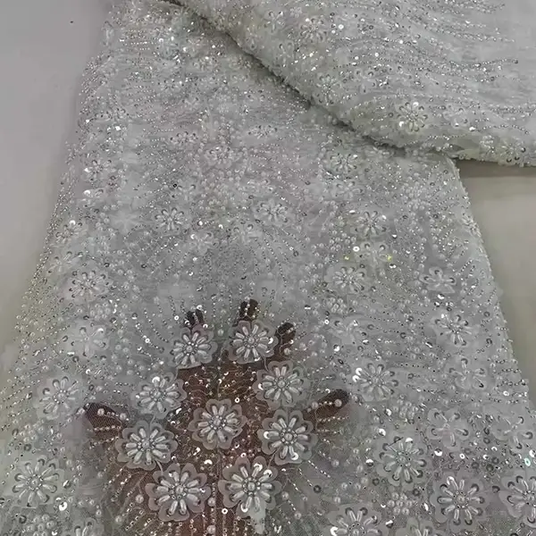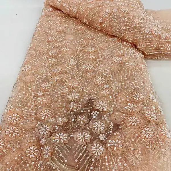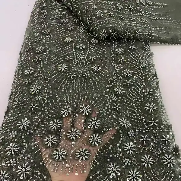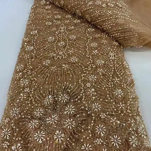 లగ్జరీ హెవీ మేడ్ ఎంబ్రాయిడరీ టల్లే పూసలు లేస్ మెష్ బీడ్డ్ ఫాబ్రిక్ క్లిష్టమైన పూసల పని మరియు సున్నితమైన లేస్ కలిగి ఉంటుంది. అధిక-సాంద్రత కలిగిన కుట్టు మరియు చేతితో వర్తించే పూసలు విలాసవంతమైన ఆకృతిని సృష్టిస్తాయి, పెళ్లి గౌన్లు, సాయంత్రం దుస్తులు మరియు హాట్ కోచర్ కోసం సరైనవి. సొగసైన, ప్రకాశవంతమైన మరియు ప్రీమియం నాణ్యత.